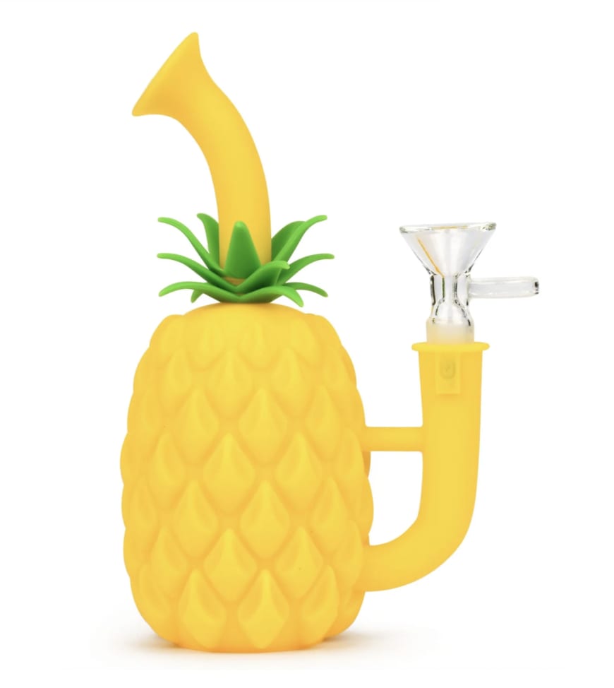 LIT Silicone 7" Tall Yellow Pineapple Water Pipe W/Glass Pull-Out